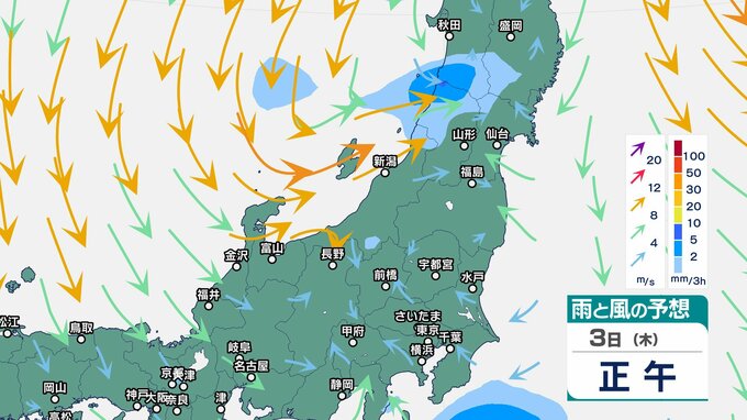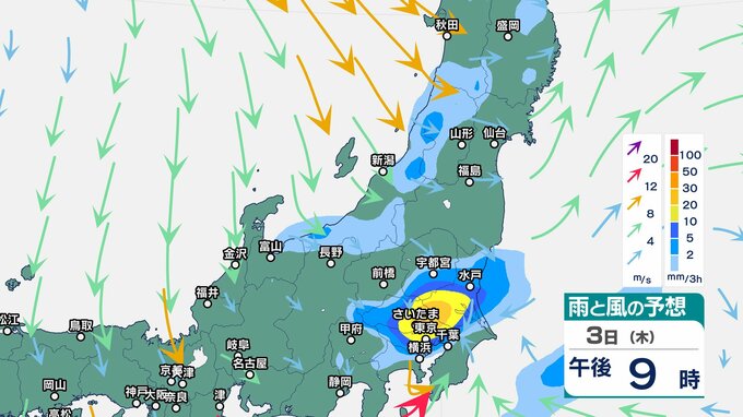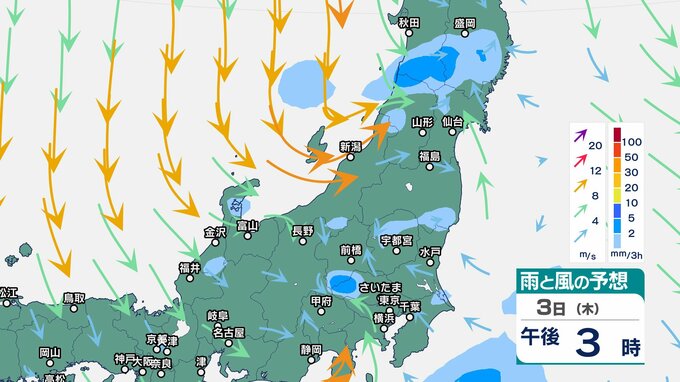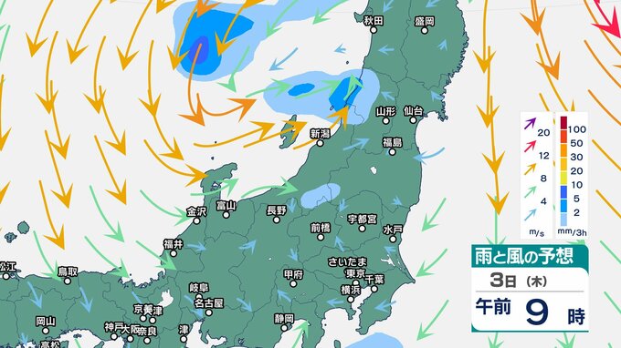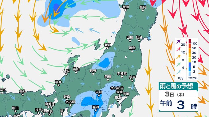 ニュースクリップ 関東甲信 2日明け方にかけ激しい雨のおそれ 伊豆諸島は高波に注意・警戒…前線上の低気圧が発達しながら日本の東へ【雨と風のシミュレーション】大気の状態不安定で関東の海上と伊豆諸島は大しけ 2025年4月1日(火) 17:48 国内 天気 3日(木)雨と風のシミュレーション 3時間ごと