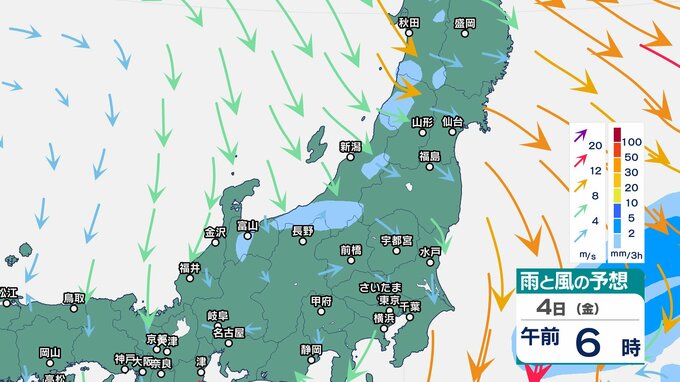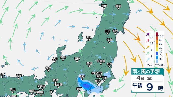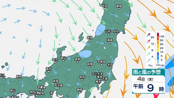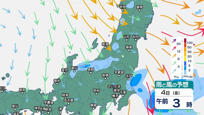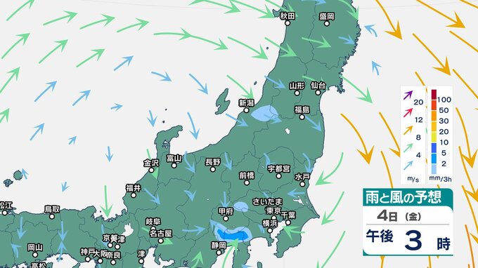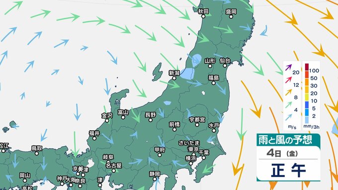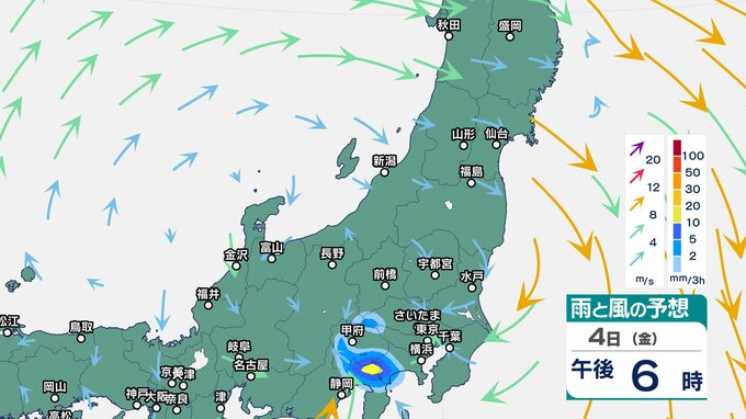 ニュースクリップ 関東甲信 2日明け方にかけ激しい雨のおそれ 伊豆諸島は高波に注意・警戒…前線上の低気圧が発達しながら日本の東へ【雨と風のシミュレーション】大気の状態不安定で関東の海上と伊豆諸島は大しけ 2025年4月1日(火) 17:48 国内 天気 4日(金)雨と風のシミュレーション 3時間ごと