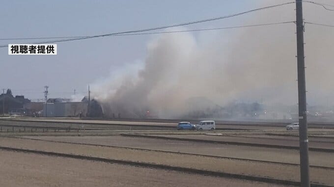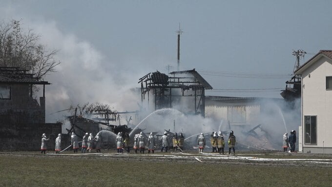 消防が駆け付け、火は約2時間後に消し止められましたが、納屋と飛島さんの住宅が全焼したとみられ、さらに隣接する住宅1棟に延焼しました。