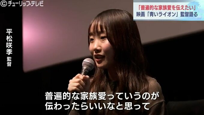 自閉症の画家、石村嘉成さんの半生を描いた映画「新居浜 ひかり物語青いライオン」の上映が富山市で始まり、平松咲季監督の舞台挨拶が行われました。