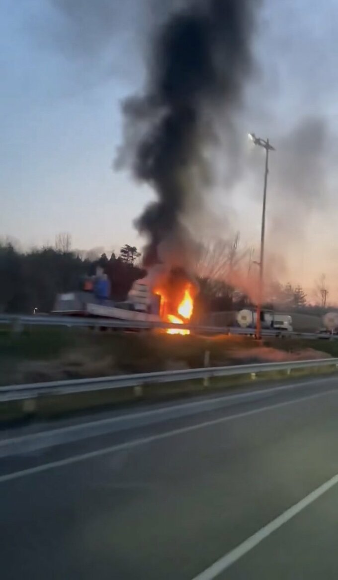 消防などによりますと、7日午後6時20分ごろ、富山県射水市の北陸自動車道上り線呉羽PAで「4トントラックの後方から出火した」とトラックの運転手から消防に通報がありました。