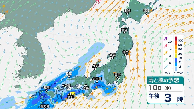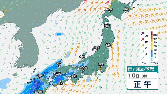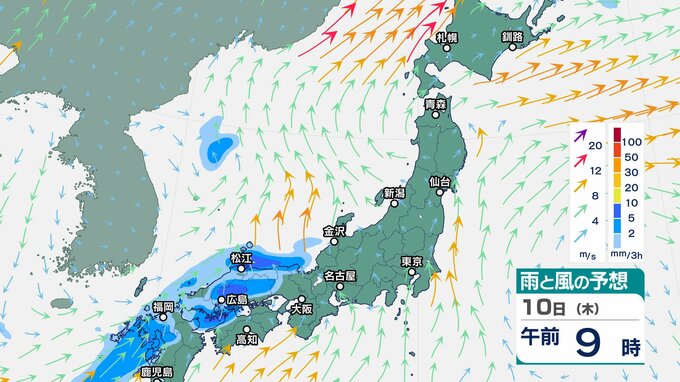 ニュースクリップ 【気象情報】11日にかけてトリプル低気圧…大気の状態が非常に不安定【気象庁】雷を伴い激しい雨の降る所も…前線に向かって暖かく湿った空気が流れ込む【雨と風のシミュレーション】 2025年4月9日(水) 17:23 国内 天気 10日(木)雨と風のシミュレーション