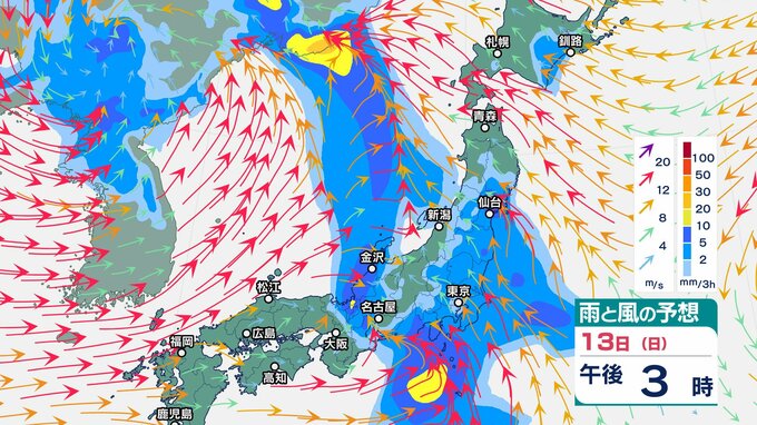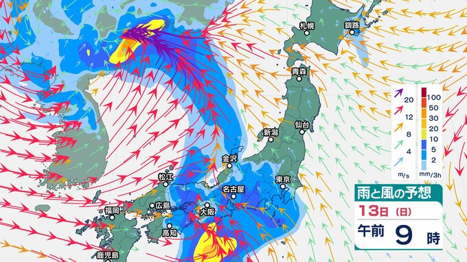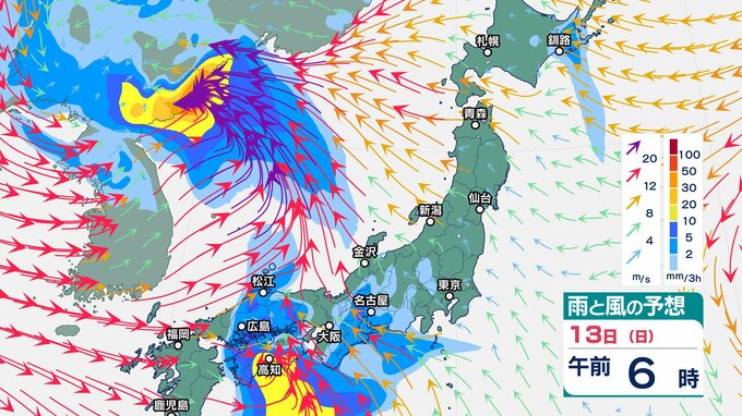 ニュースクリップ 【気象情報】11日にかけてトリプル低気圧…大気の状態が非常に不安定【気象庁】雷を伴い激しい雨の降る所も…前線に向かって暖かく湿った空気が流れ込む【雨と風のシミュレーション】 2025年4月9日(水) 17:23 国内 天気 13日(日)雨と風のシミュレーション