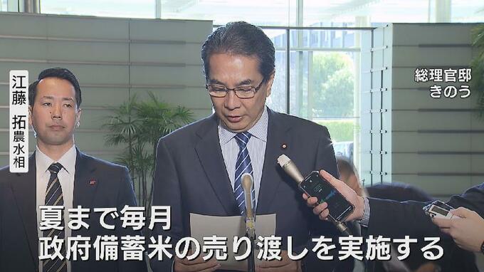 「上昇したコメの価格を落ち着かせるため、この夏の端境期まで切れ目なく政府備蓄米が供給されるよう、夏まで毎月、政府備蓄米の売渡を実施する」