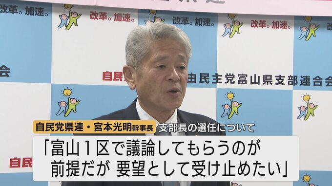 要望書を受け取った自民党県連の宮本光明幹事長は支部長の選任について「富山一区で議論してもらうのが前提だが要望として受け止めたい」としています。