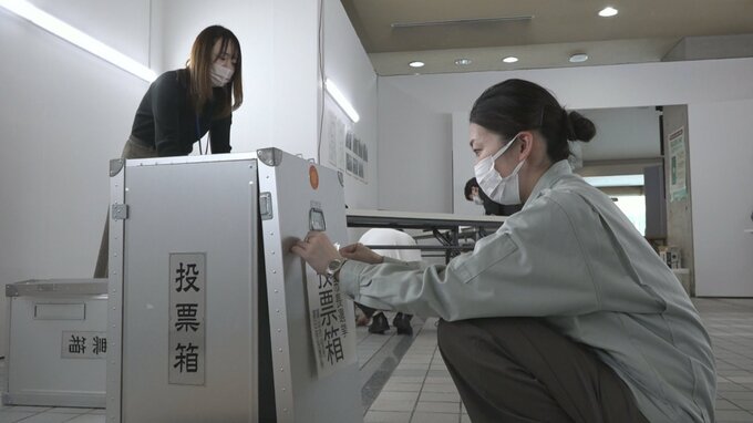 任期満了に伴う富山市長選・富山市議選の告示を前に、富山市役所1階多目的コーナーでは市の職員が投票箱や記載台を設置するなどして、期日前投票所の準備を行いました。