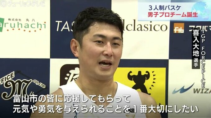 3人制バスケットボールを盛り上げようと、富山市出身の喜入大地選手が中心となり、今年3月に発足しました。