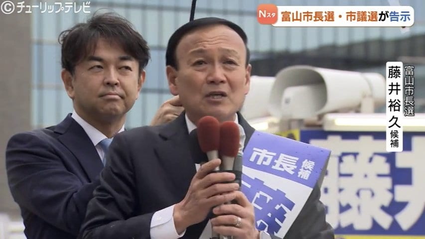 任期満了に伴う富山市長選挙に立候補したのは無所属で現職、自民、公明、立憲民主、国民民主党が推薦する藤井裕久候補(63)と無所属の新人で共産党が推薦する染谷明子候補(47)です。
