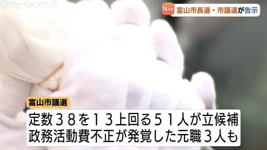 また、富山市議選には定数38を13上回る51人が立候補し、中には政務活動費の不正が発覚した元職3人も含まれています。