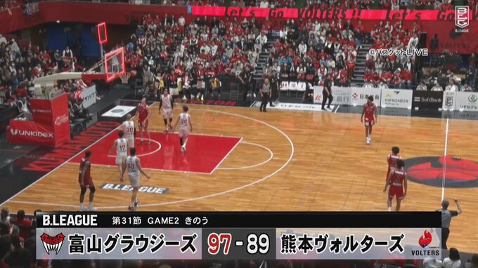 バスケットボールB2の富山グラウジーズ。この週末は、熊本ヴォルターズと対戦。地区2位ならプレーオフが地元開催となるため、現在3位のグラウジーズは落とせない一戦で意地の白星を挙げました。