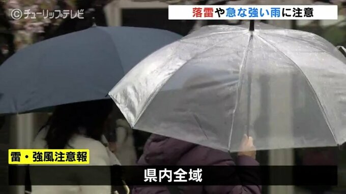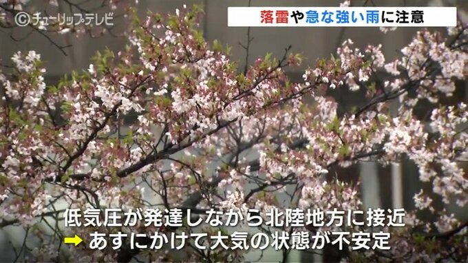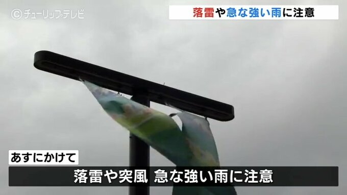 15日、富山県内全域に雷・強風注意報が発表されています。昼過ぎから16日にかけて大気が不安定な状態が続く見込みです。落雷や突風にご注意ください。