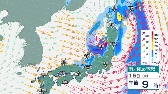 ニュースクリップ 北陸の上空5500メートルに氷点下30℃以下の強い寒気…大気の状態 非常に不安定に【雨と風シミュレーション】16日夕方にかけ落雷や竜巻などの激しい突風、ひょう、急な強い雨に注意 2025年4月15日(火) 16:43 国内 天気 15日(火)雨と風のシミュレーション