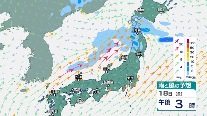 ニュースクリップ 北陸の上空5500メートルに氷点下30℃以下の強い寒気…大気の状態 非常に不安定に【雨と風シミュレーション】16日夕方にかけ落雷や竜巻などの激しい突風、ひょう、急な強い雨に注意 2025年4月15日(火) 16:43 国内 天気 18日(金)雨と風のシミュレーション