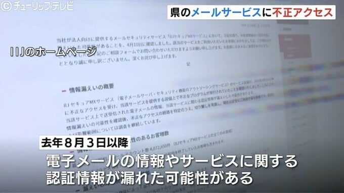 県がメールサービスの運用保守を委託している事業者に確認したところ、15日時点で直近90日間の不正ログインは確認されていないとの報告を受けたということです。ただ、県は情報漏えいの可能性は否定できないとしています。