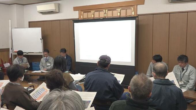 15日夜に行われた玉川自治会向けの住民説明会で、市側は地盤調査の結果や液状化対策の工事内容などについて説明しました。