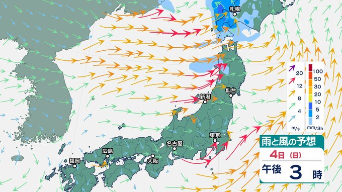 ニュースクリップ 東京地方 4日昼過ぎから夜にかけ、天気の急変に注意…上空寒気の影響 発達した積乱雲の兆しあれば安全確保を 気象庁 2025年5月3日(土) 18:43 国内 天気 4日(日)雨風シミュレーション3時間ごと