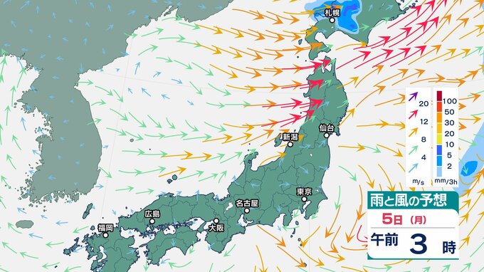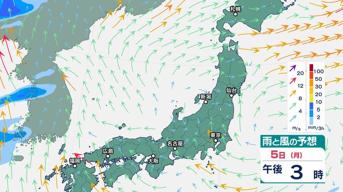 ニュースクリップ 東京地方 4日昼過ぎから夜にかけ、天気の急変に注意…上空寒気の影響 発達した積乱雲の兆しあれば安全確保を 気象庁 2025年5月3日(土) 18:43 国内 天気 5日(月)雨風シミュレーション3時間ごと