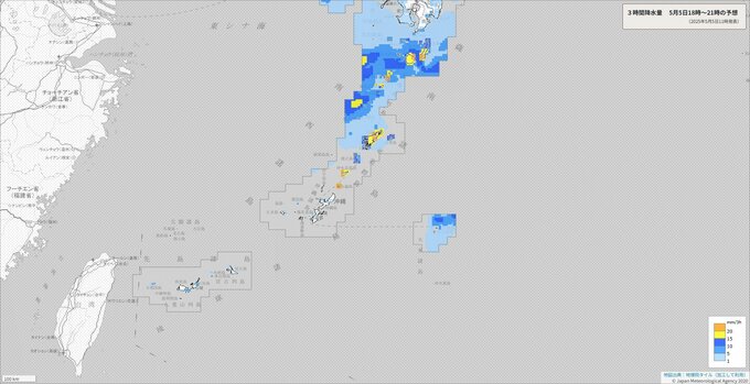 沖縄本島地方で警報級の大雨のおそれ 多いところでは1時間に30mm、バケツをひっくり返したような雨量の可能性も 土砂災害や河川の増水などに注意を 2025年5月5日(月) 16:35 国内 天気 3時間ごとの予想降水量(5日) 画像は気象庁HPより(5日午前11時発表)