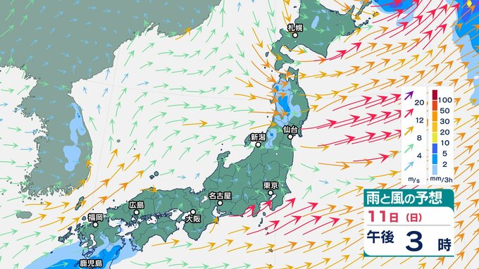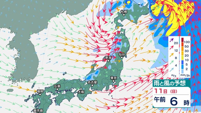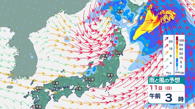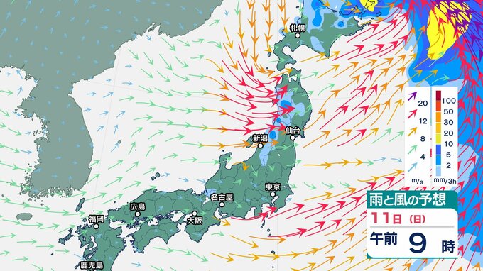 ニュースクリップ 日本海の低気圧 発達しながら東北東へ…東北日本海側は10日夜遅くから南のち西よりの強い風の見込み【雨と風のシミュレーション 3時間ごと】別の低気圧が三陸沖でも発生する見込み 2025年5月10日(土) 18:08 国内 天気 11日(日)雨と風のシミュレーション
