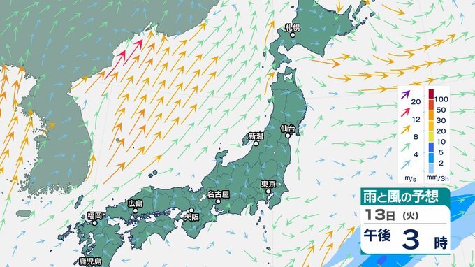 ニュースクリップ 沖縄・大東地方では落雷や突風などに注意 降り始めから2日で300mm近い雨量の記録も 大気の状態が不安定なため【雨と風のシミュレーション 3時間ごと】 2025年5月12日(月) 08:55 国内 天気 13日(火)雨と風のシミュレーション
