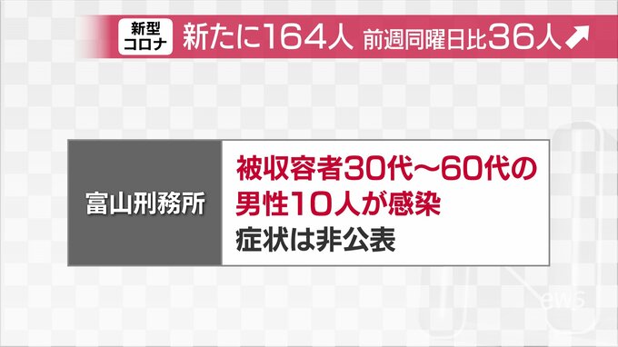 また富山刑務所は収容されている30代から60代の男性10人が感染したと発表しました。富山刑務所は個別の症状については明らかにしていません。