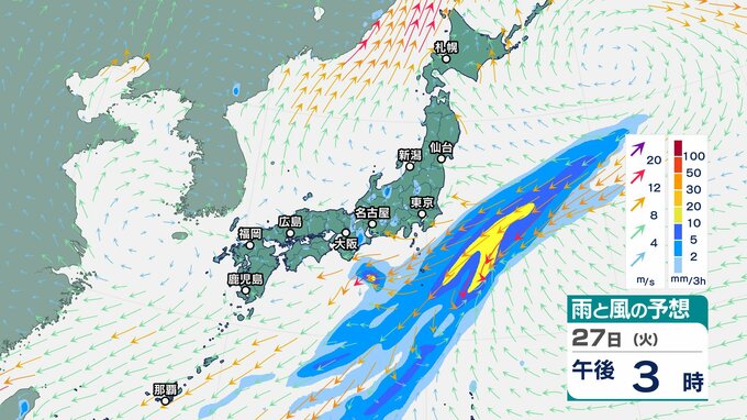 ニュースクリップ “晴れ間と雨の繰り返し”…西日本や東日本でも “梅雨の足音” 聞こえる一週間に 前線伴う低気圧の影響【雨風シミュレーション】東日本の太平洋側は大気の状態非常に不安定 北日本は26日にかけて強風や高波 2025年5月25日(日) 14:31 国内 27日(火)雨と風シミュレーション
