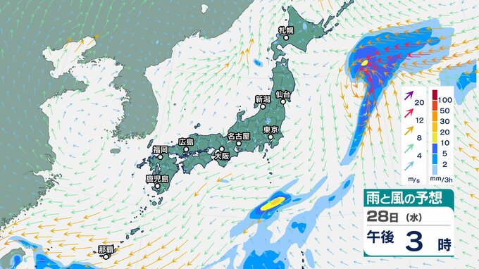 ニュースクリップ “晴れ間と雨の繰り返し”…西日本や東日本でも “梅雨の足音” 聞こえる一週間に 前線伴う低気圧の影響【雨風シミュレーション】東日本の太平洋側は大気の状態非常に不安定 北日本は26日にかけて強風や高波 2025年5月25日(日) 14:31 国内 28日(水)雨と風シミュレーション