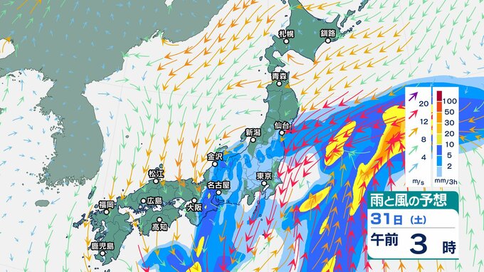 ニュースクリップ 【気象情報】伊豆諸島 31日明け方まで大雨に警戒【雨と風のシミュレーション】発達中の低気圧 31日朝にかけて関東の東へ 2025年5月30日(金) 10:57 国内 天気 31日(土)雨と風のシミュレーション