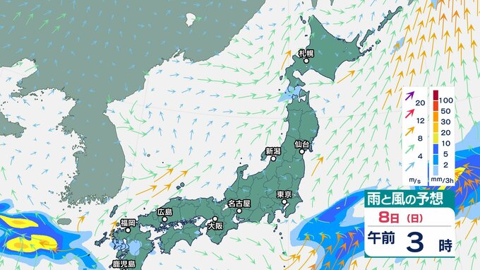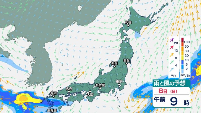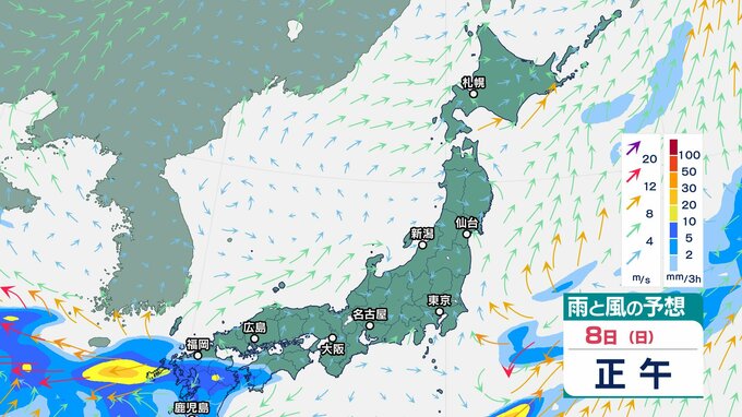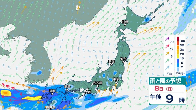 ニュースクリップ 週明けは天気急変に注意!西日本中心に大雨で警報級の可能性…雷や突風、竜巻にも【雨と風のシミュレーション】気象庁は西日本で警報級の大雨、土砂災害・河川増水・浸水に警戒呼びかけ 2025年6月7日(土) 07:15 国内 雨と風のシミュレーション 8日(日)