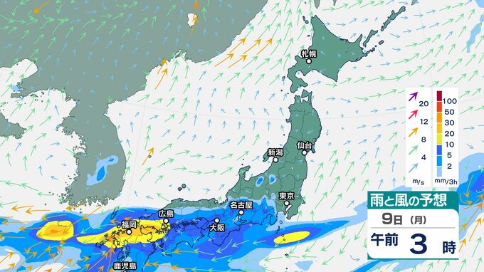 ニュースクリップ 週明けは天気急変に注意!西日本中心に大雨で警報級の可能性…雷や突風、竜巻にも【雨と風のシミュレーション】気象庁は西日本で警報級の大雨、土砂災害・河川増水・浸水に警戒呼びかけ 2025年6月7日(土) 07:15 国内 雨と風のシミュレーション 9日(月)