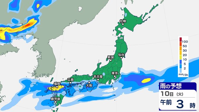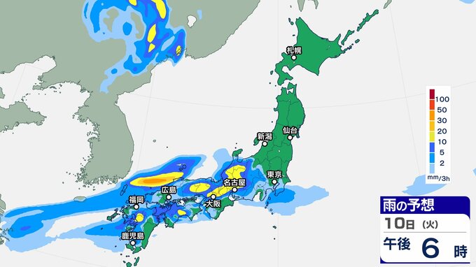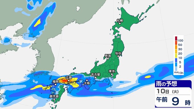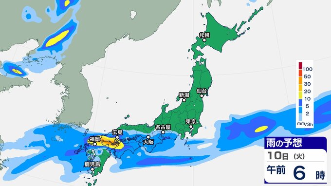 ニュースクリップ 梅雨前線が活発化…西日本で警報級の大雨に警戒【雨の動きシミュレーション】雷や突風、土砂災害、浸水にも注意が必要な不安定な一週間へ 2025年6月8日(日) 08:50 国内 天気 10日(火)雨と風のシミュレーション