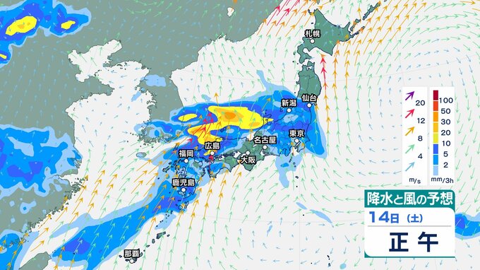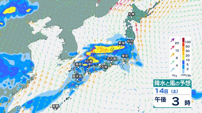 ニュースクリップ 少しの雨でも土砂災害のおそれ 11日夕方にかけ警戒を 鹿児島では24時間で70mmの雨量予想【雨と風のシミュレーション】 梅雨前線の停滞で大気が不安定に 2025年6月11日(水) 11:14 国内 天気 14日(土)雨の動きシミュレーション