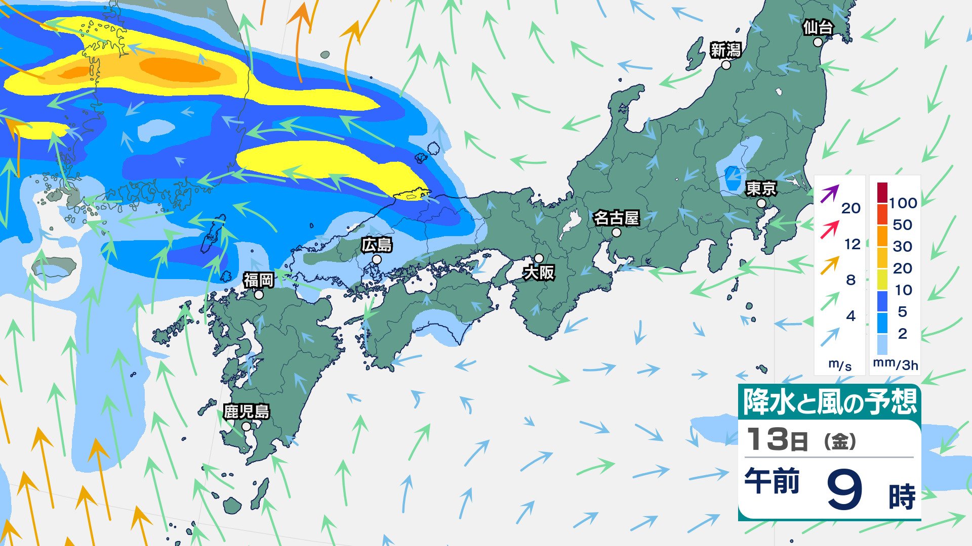ニュースクリップ 【大雨情報11時更新】梅雨前線が西日本に停滞 近畿中部ではこれまでの雨により地盤の緩んでいる所があるため土砂災害に警戒を【雨と風のシミュレーション】 2025年6月11日(水) 11:47 国内 天気 13日(金)雨の動きシミュレーション