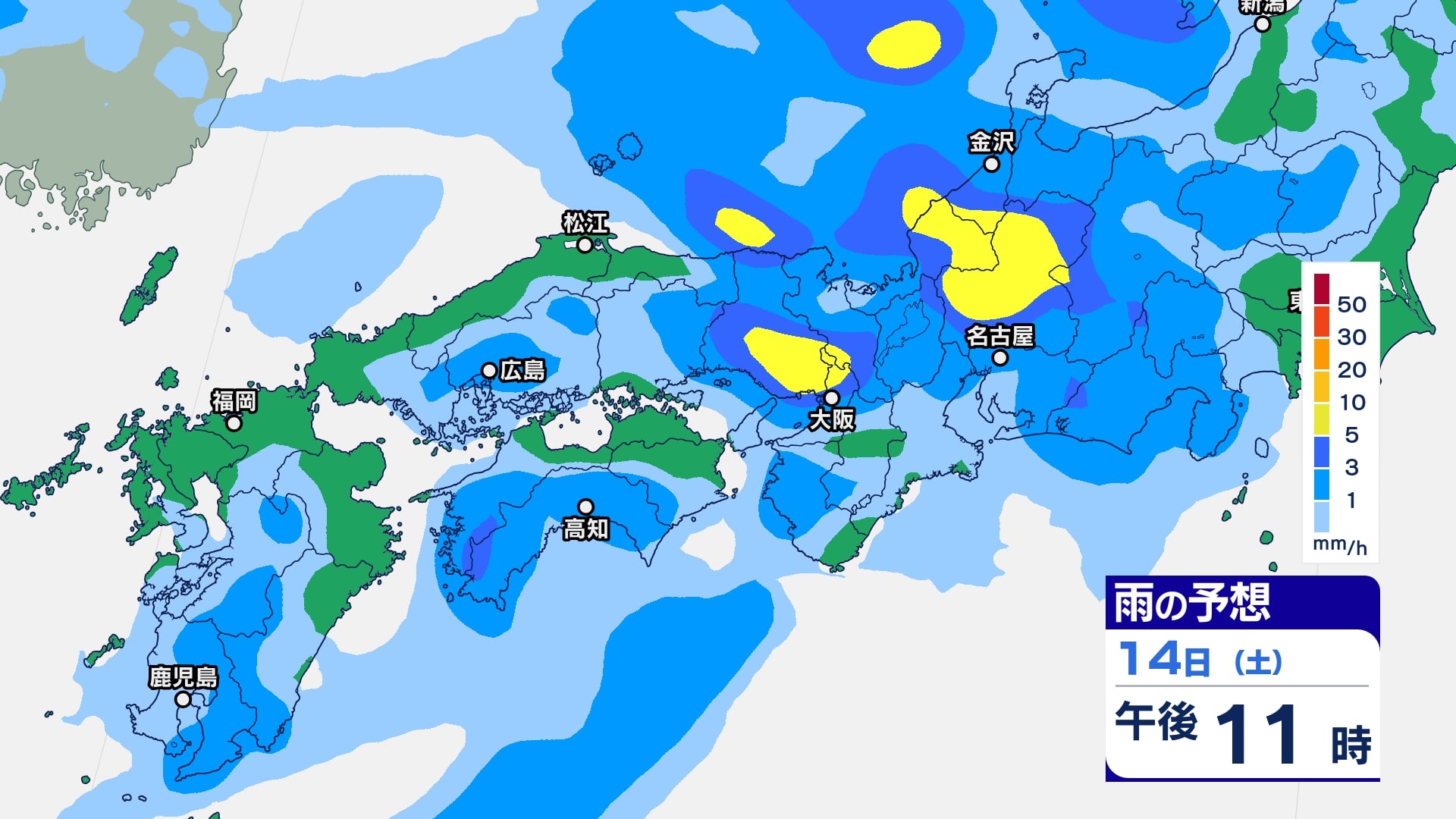 ニュースクリップ 【大雨情報】九州南部は14日朝から夜遅くにかけて局地的に雷を伴って“滝のようにゴーゴーと降り続く”非常に激しい雨が降り大雨となるおそれ【雨と風のシミュレーション】宮崎・鹿児島県で14日の1時間50ミリの降水予想の所も 2025年6月13日(金) 17:14 国内 天気 14日(土)午後7時~午後11時まで雨のシミュレーション