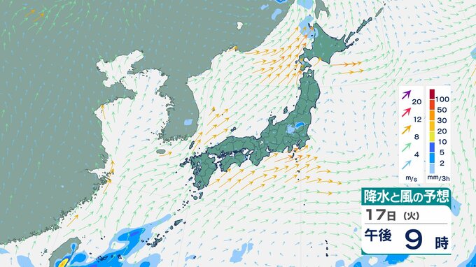 ニュースクリップ 関東甲信地方 17日夜遅くにかけて“警報級”大雨の可能性…多いところでは関東地方北部で50mm予想 【雨風シミュレーション】土砂災害や浸水に注意警戒を 2025年6月17日(火) 17:56 国内 天気 17日(火)雨の動きシミュレーション