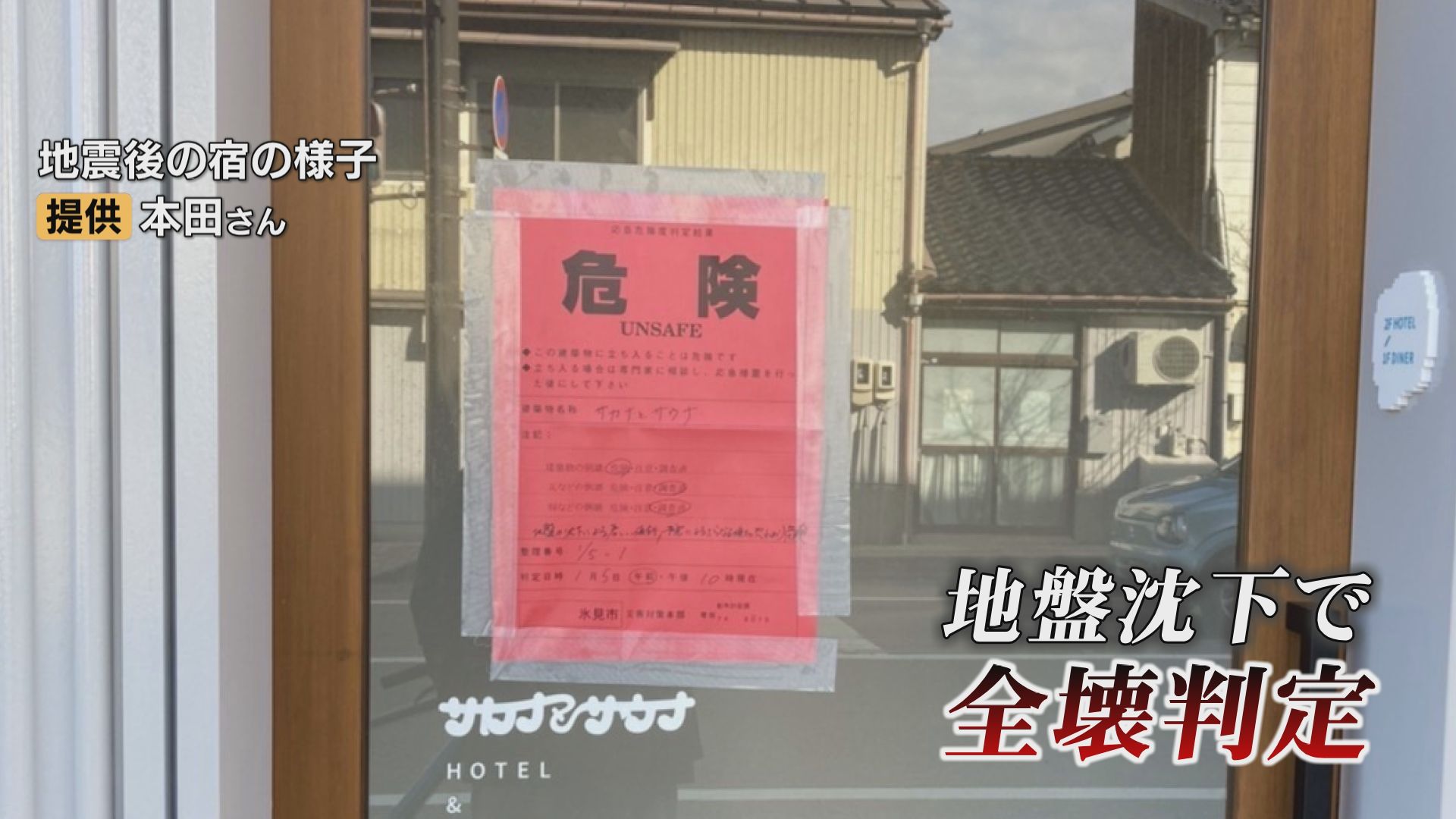 氷見漁港のそばにあるサカナとサウナは液状化による地盤沈下で建物が傾き、全壊判定。オープンからわずか数か月で宿を閉じざるを得ませんでした。