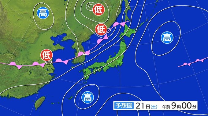 22日から23日頃にかけて、梅雨前線が東北地方に停滞する見込みです。この前線に向かって暖かく湿った空気が流れ込むため、前線の活動が活発化すると予測されています。特に注意が必要なのは東北日本海側北部で、この地域では22日から23日にかけて激しい雨が降り、大雨となる所が出てくる可能性が高まっています。