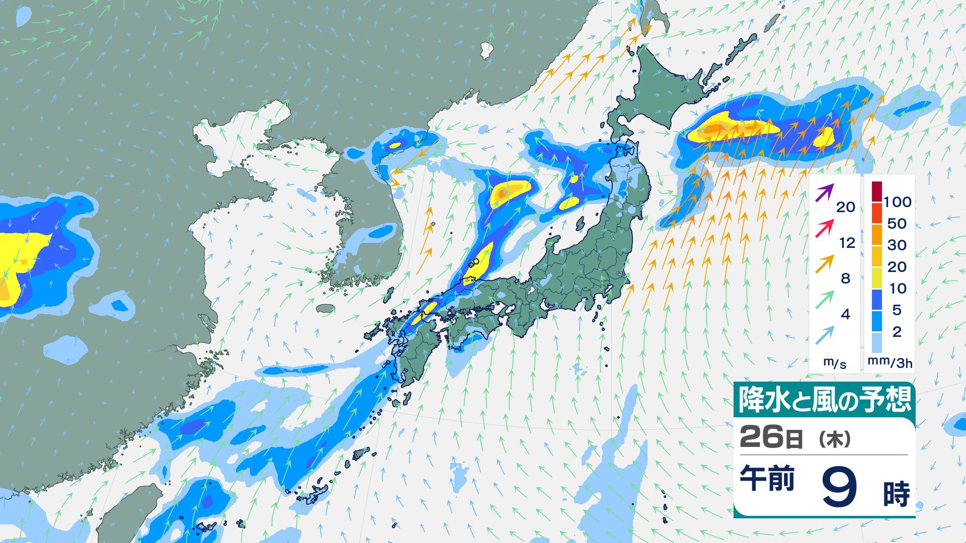 ニュースクリップ 【大雨情報】前線の活動が活発で大気の状態が不安定に…“警報級”大雨の可能性 東北地方【雨風シミュレーション】土砂災害や浸水に注意・警戒を 2025年6月22日(日) 16:24 国内 天気 26日(木)の雨風シミュレーション