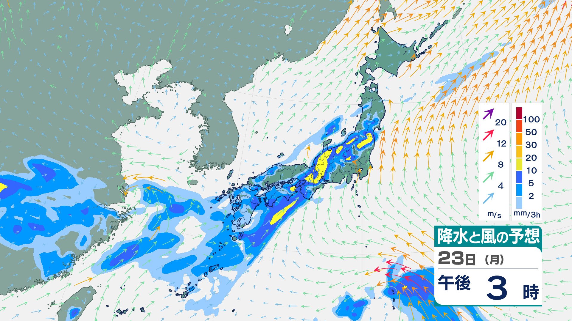 ニュースクリップ 【台風情報】台風のたまご “熱帯低気圧” 小笠原近海を北西へ あす24日午前6時までに「台風2号」へ発達 【雨と風の動きシミュレーション】 2025年6月23日(月) 07:47 国内 天気 23日(月)の雨風シミュレーション