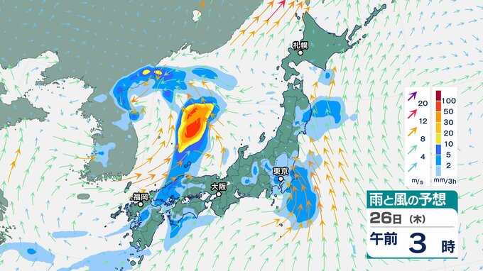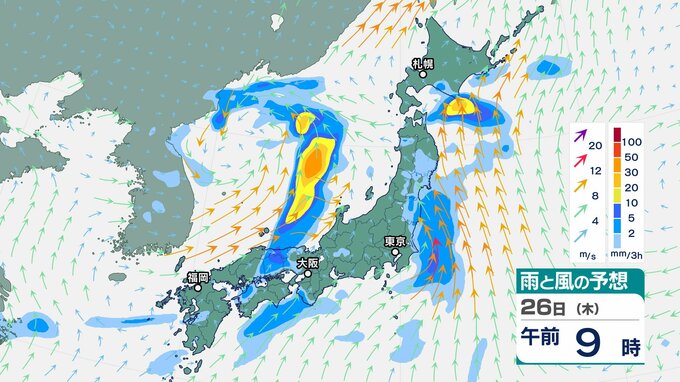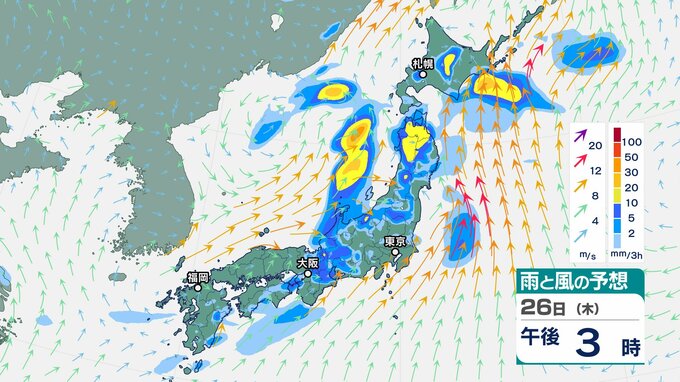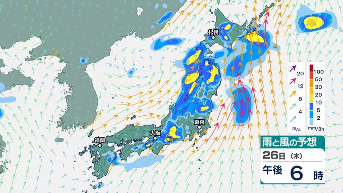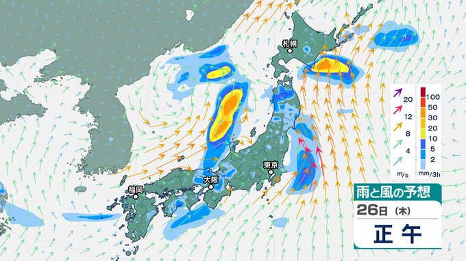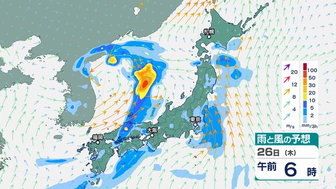 ニュースクリップ “梅雨前線” と複数の “低気圧” さらに台風から変わった “熱帯低気圧” が複雑に影響…25日は大雨と強風、北日本では落雷にも警戒【雨と風のシミュレーション】西日本から北日本にかけて大雨に警戒 土砂災害や河川増水に注意 2025年6月25日(水) 08:43 国内 天気 26日(木)雨と風のシミュレーション
