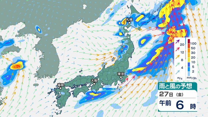 ニュースクリップ “梅雨前線” と複数の “低気圧” さらに台風から変わった “熱帯低気圧” が複雑に影響…25日は大雨と強風、北日本では落雷にも警戒【雨と風のシミュレーション】西日本から北日本にかけて大雨に警戒 土砂災害や河川増水に注意 2025年6月25日(水) 08:43 国内 天気 27日(金)雨と風のシミュレーション
