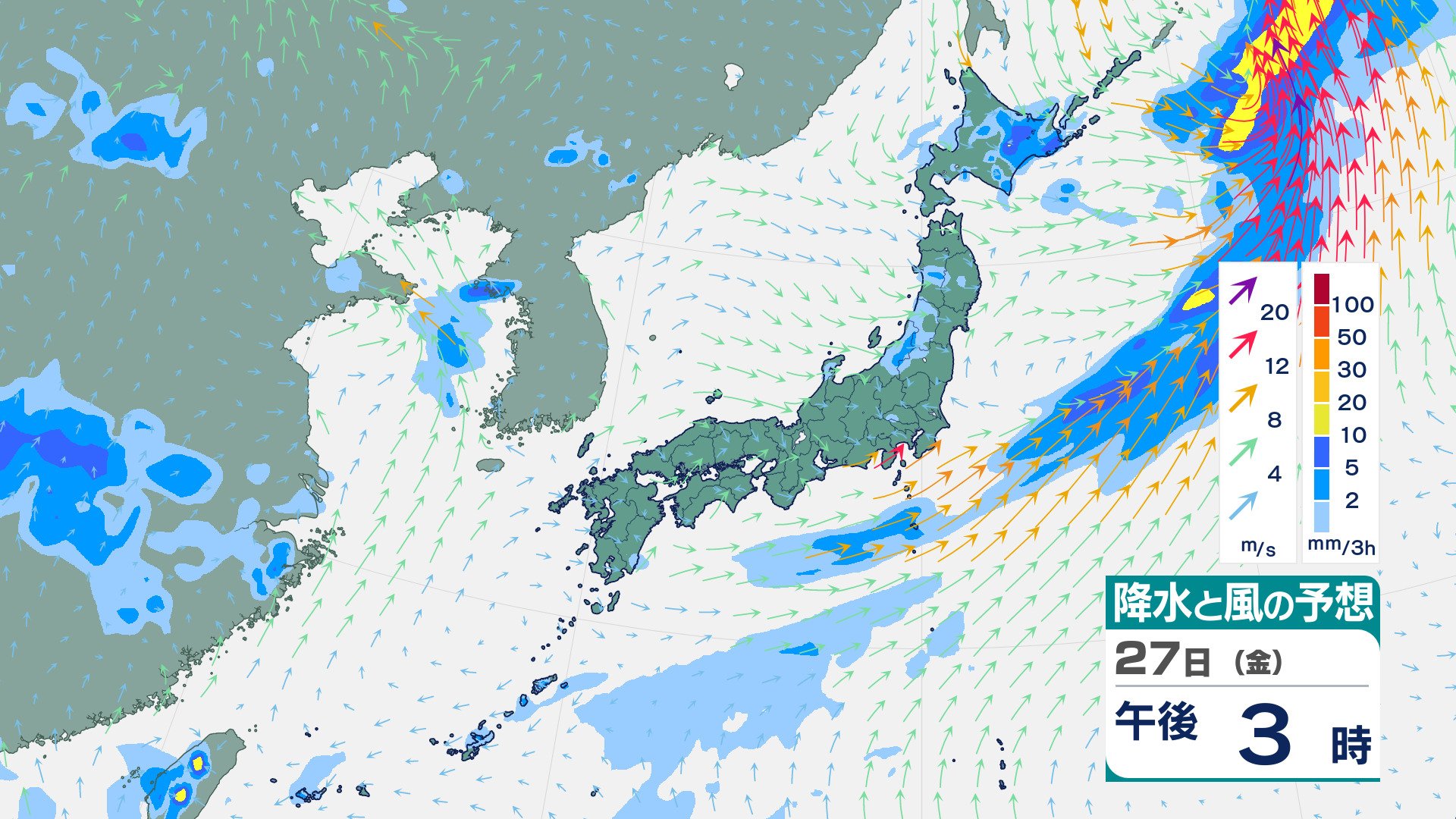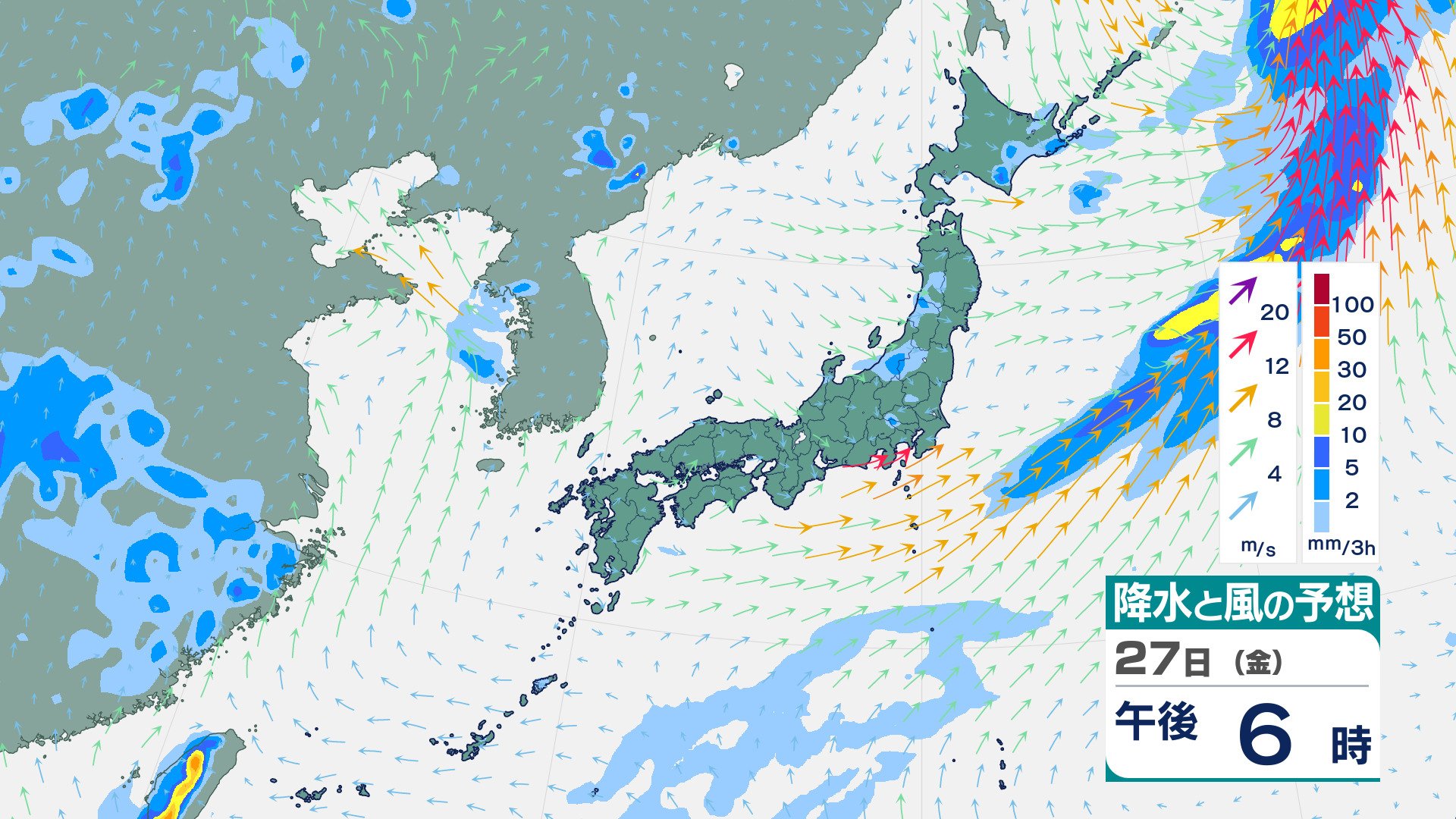 ニュースクリップ 関東甲信地方 少ない雨量でも土砂災害の危険度が高まるおそれ 降り始めから140mm近いところも【雨風シミュレーション】26日夜遅くにかけ、大気の状態が不安定に 2025年6月26日(木) 07:57 国内 天気 27日(金)の雨風シミュレーション