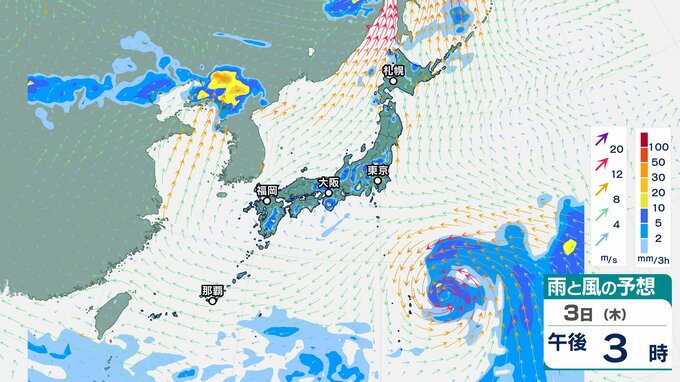 ニュースクリップ 【台風情報】台風3号「ムーン」小笠原近海を時速10キロで北西へ【雨と風のシミュレーション】週明けにかけ日本の東を北上か 名称「ムーン」はミクロネシアの6月に由来 2025年7月3日(木) 10:09 国内 天気 3日(木)雨と風のシミュレーション