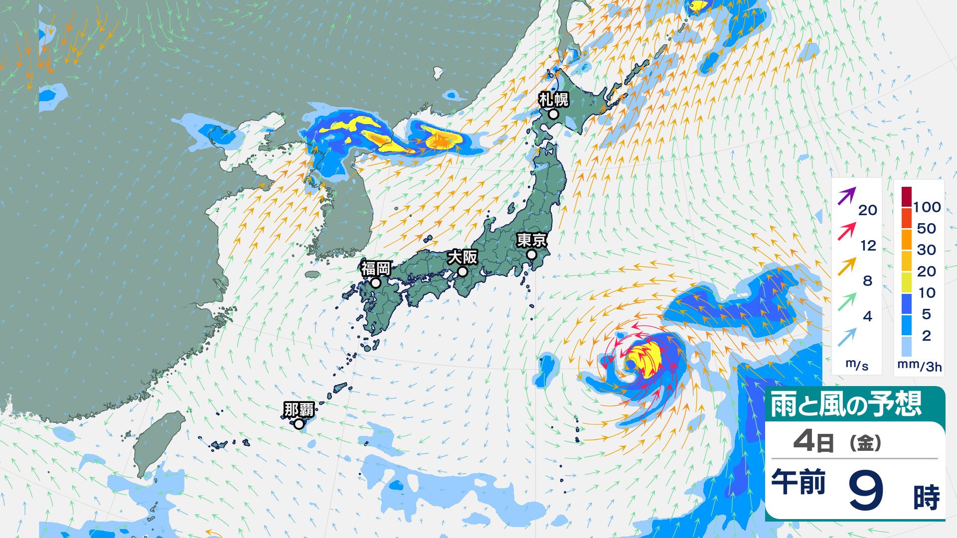 ニュースクリップ ”10年に一度”の高温… 北海道、東北、関東甲信、北陸、東海、近畿、中国、四国、九州北部、九州南部 平年よりも2.7℃以上上昇のところも 熱中症に厳重警戒 2025年7月3日(木) 15:23 国内 天気 4日(金)雨と風のシミュレーション