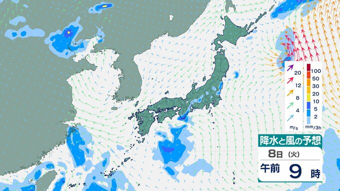 ニュースクリップ 【台風のたまご】24時間以内に台風に発達へ 勢力を強めながら東シナ海へと移動の予想【雨風シミュレーション】 2025年7月4日(金) 21:08 国内 天気 8日(火)の雨風シミュレーション