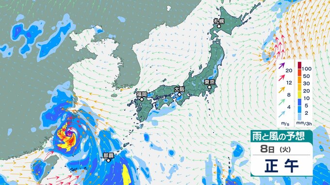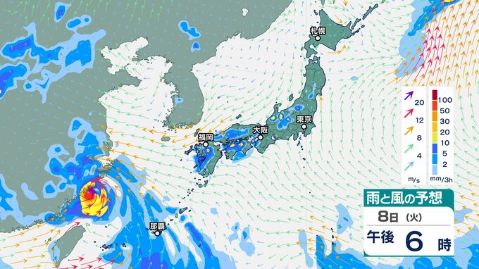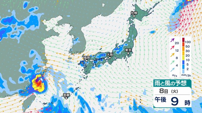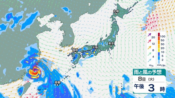 ニュースクリップ 台風4号は西へ進路変更、中国大陸へ 一方、本州は猛暑…北日本と東日本は別の大雨に警戒【雨と風の動き シミュレーション】 2025年7月8日(火) 11:06 国内 天気 8日(火)雨と風のシミュレーション