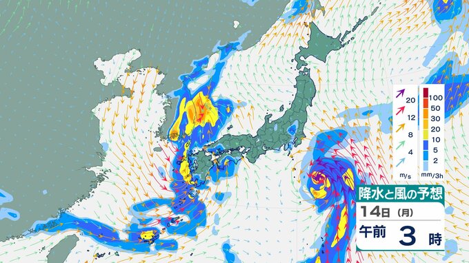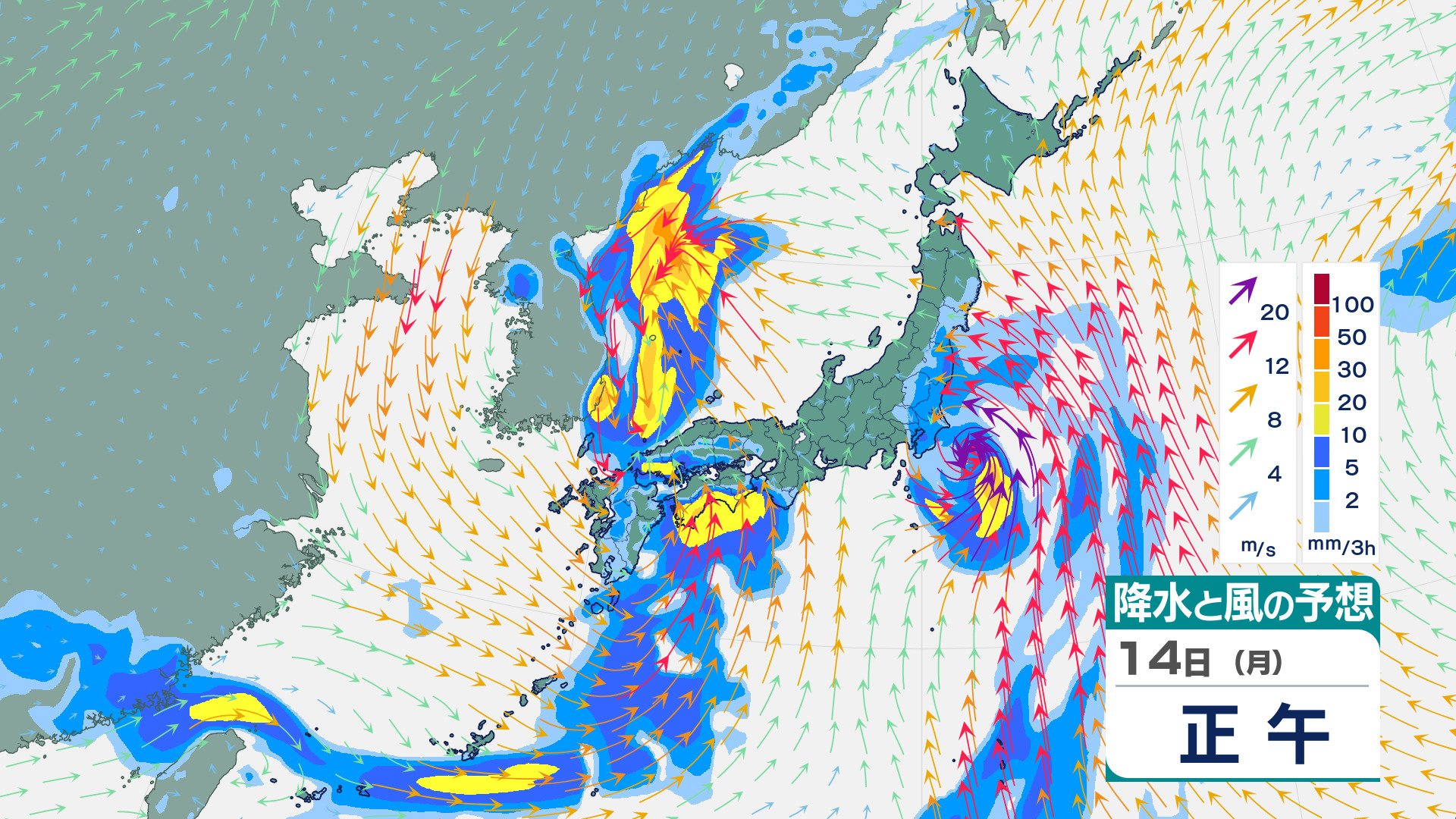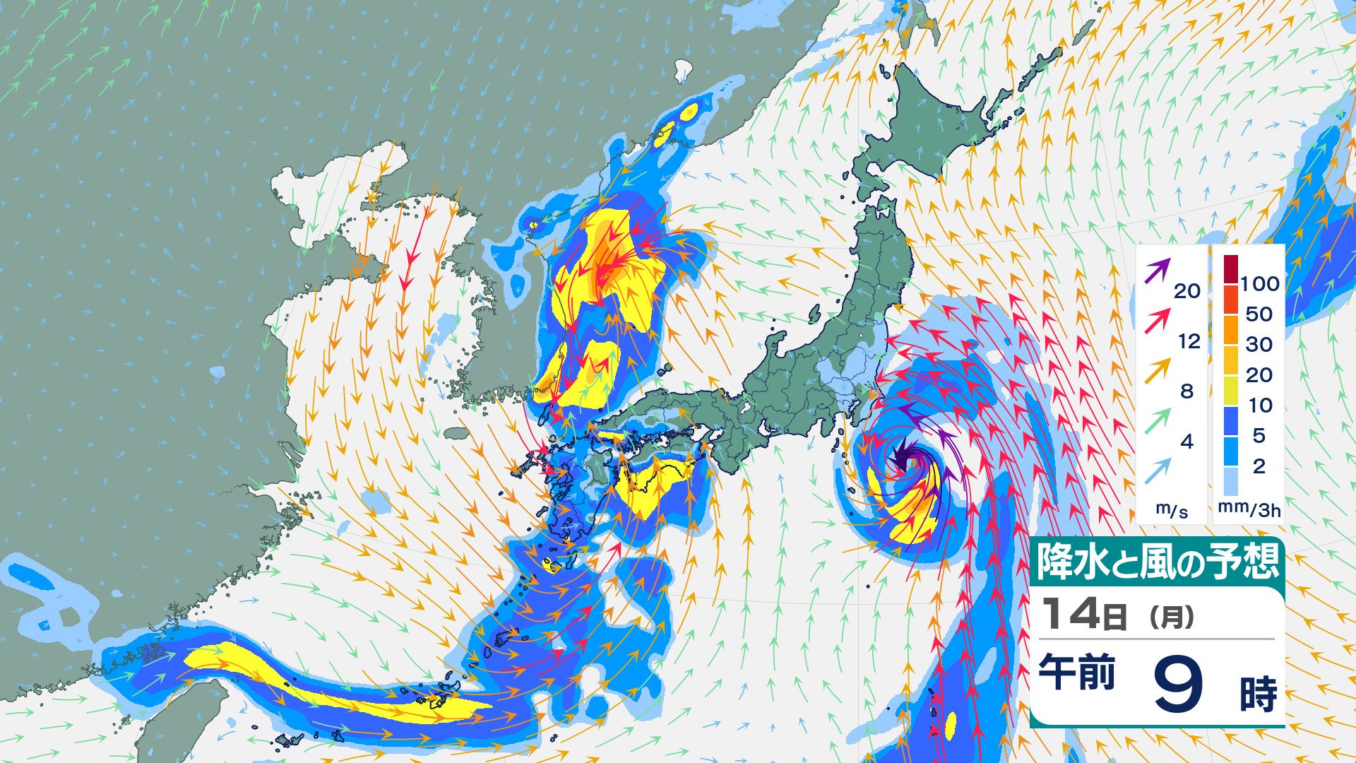 ニュースクリップ 【台風5号】東日本や北日本の太平洋側に接近のおそれ 関東・東北では最大瞬間風速35m予想 【雨風シミュレーション】暴風・高波に警戒を 2025年7月13日(日) 18:59 国内 天気 14日(月)の雨風シミュレーション