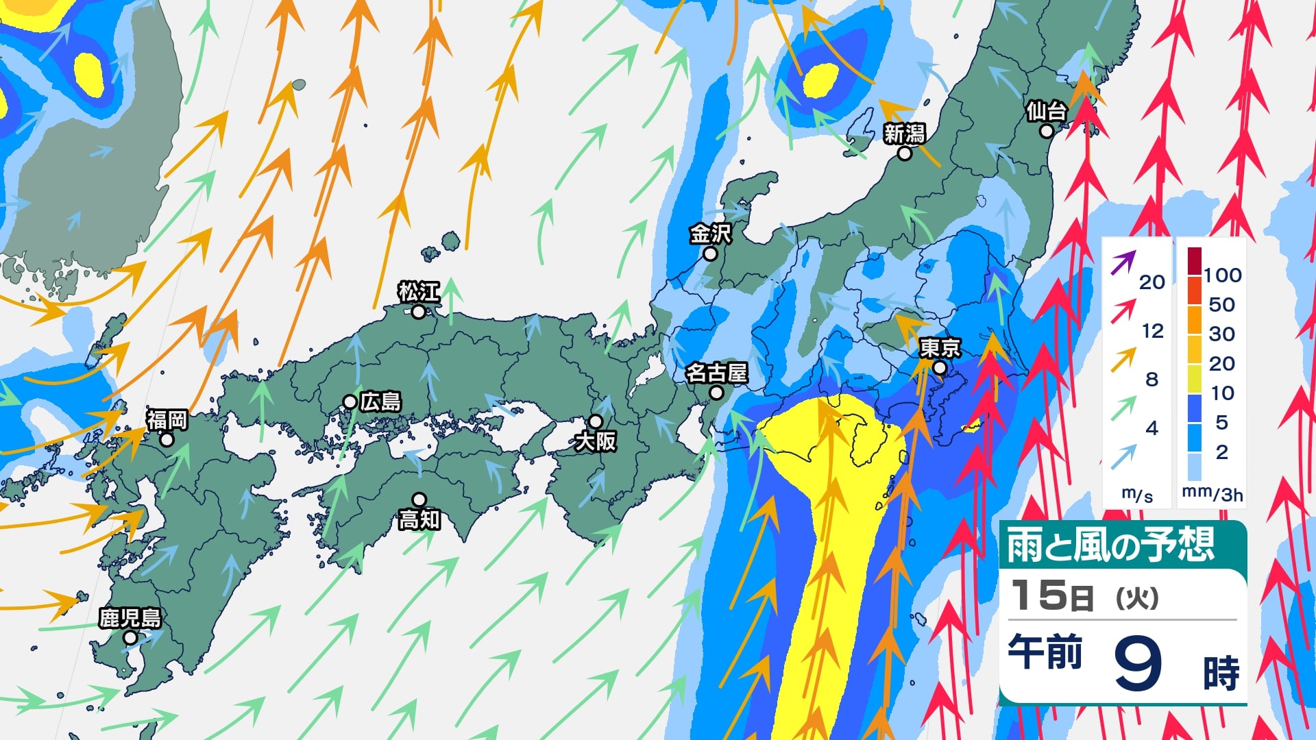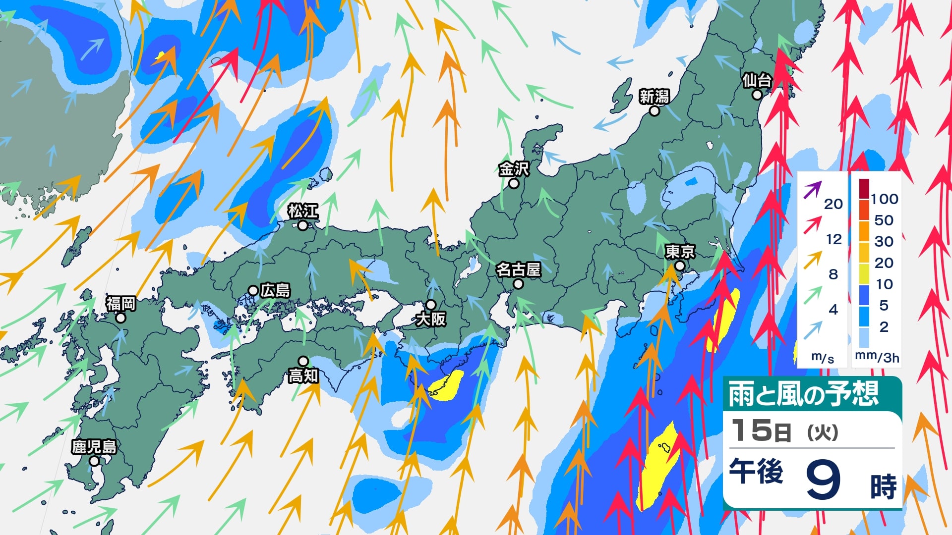 【大雨情報】四国地方「大気の状態が非常に不安定」局地的に雷を伴った『非常に激しい雨』の降るおそれ 太平洋側では15日朝までの24時間に多い所で200ミリの降水予想 【雨と風のシミュレーション】 2025年7月14日(月) 10:45 国内 暮らし・マネー 15日(火)雨と風のシミュレーション