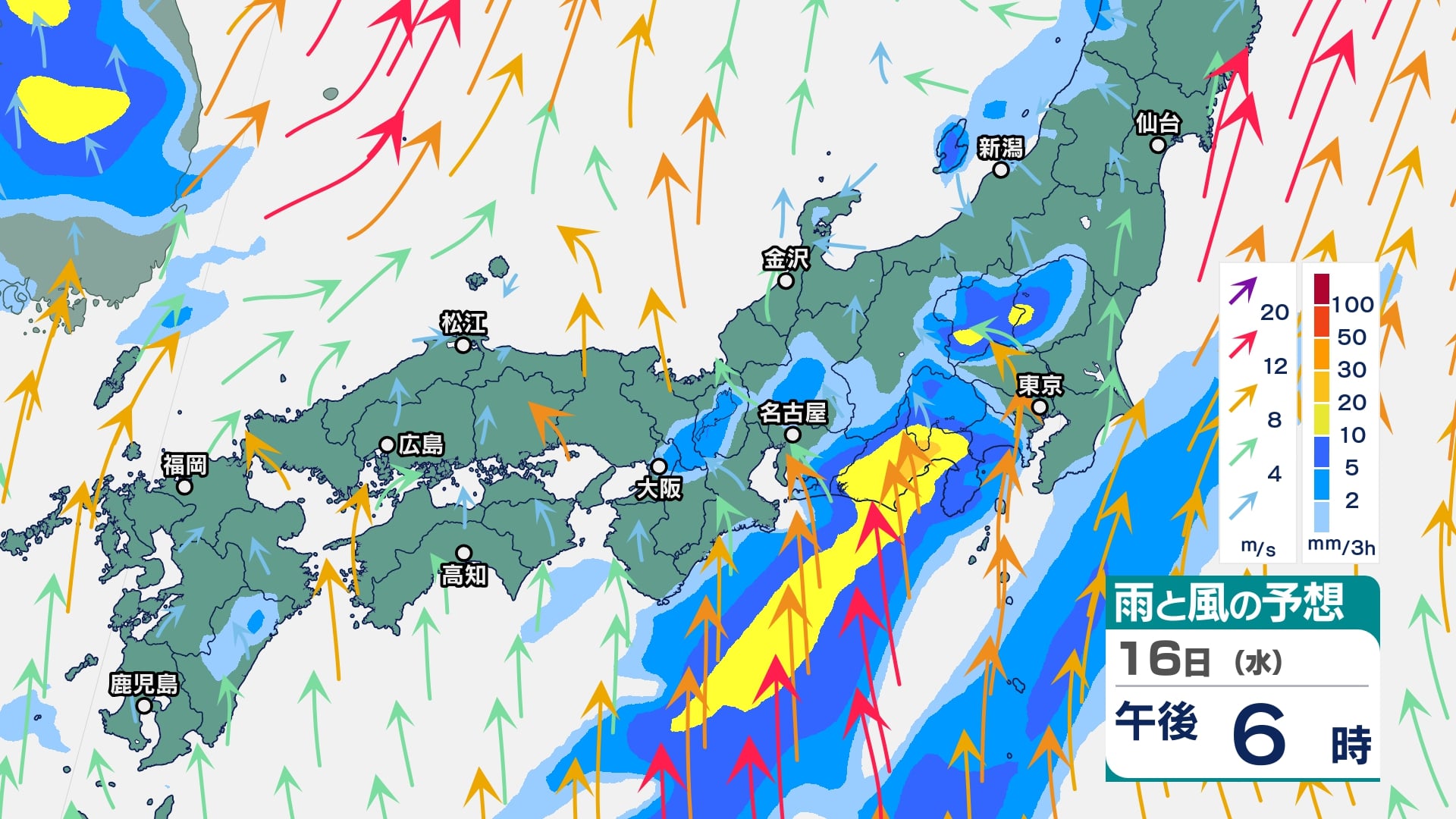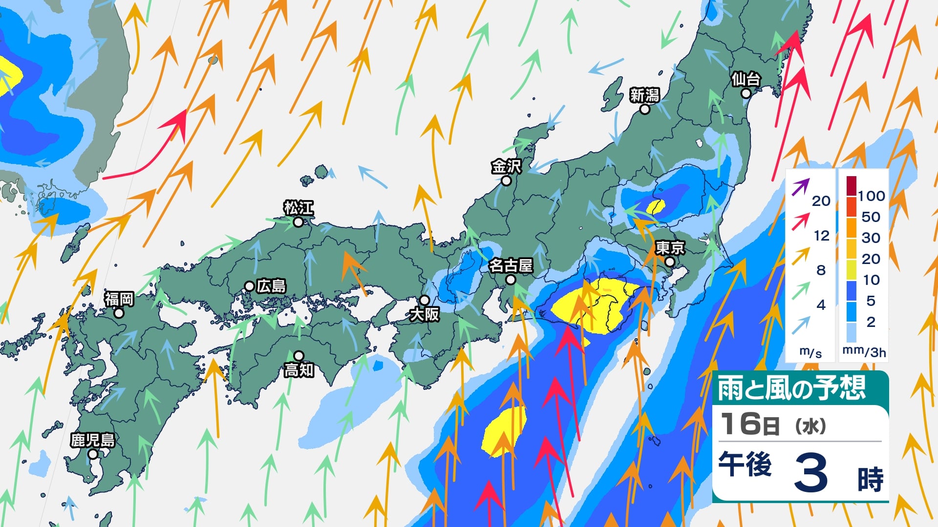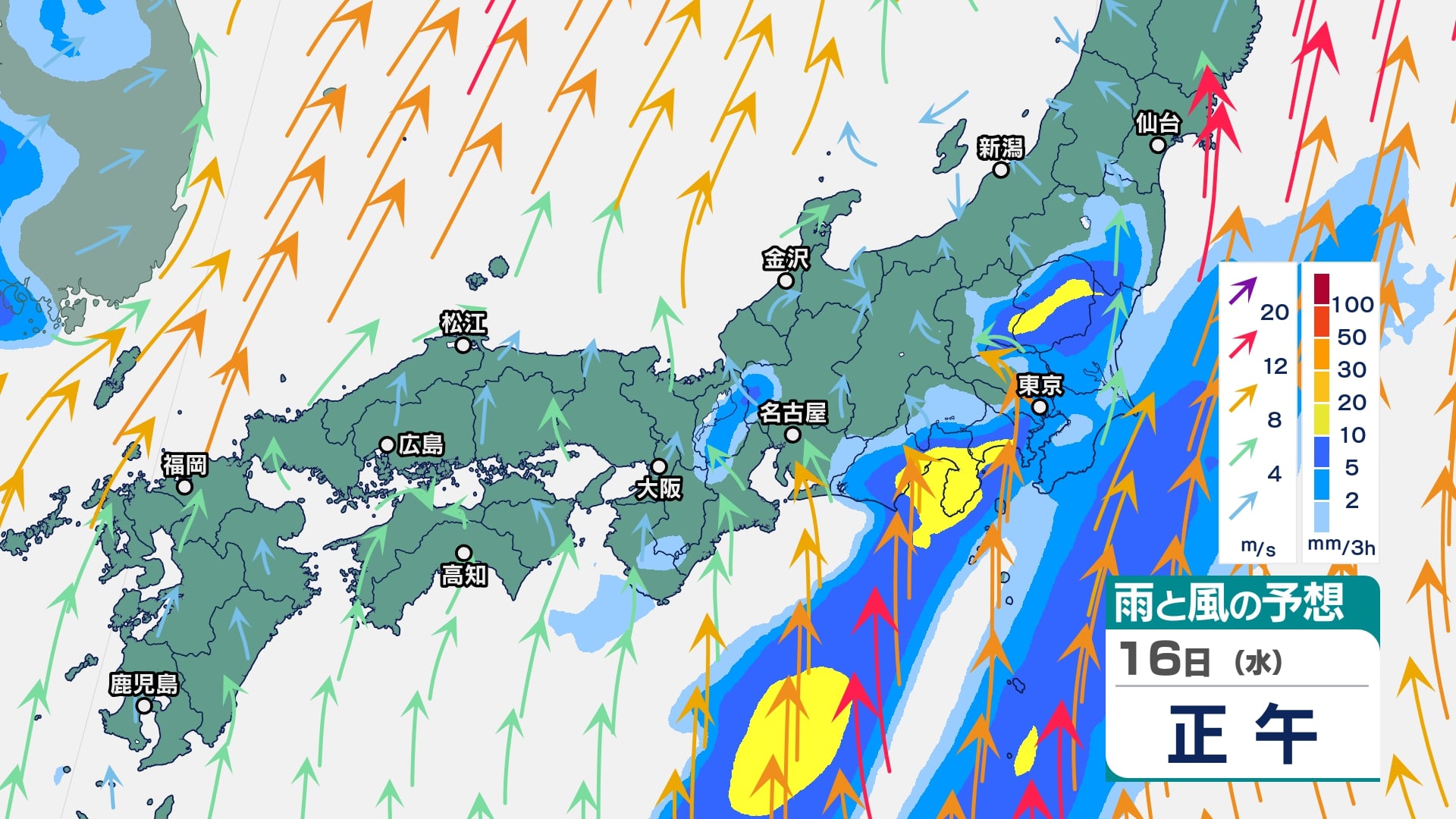 ニュースクリップ 【台風5号】北日本に接近し上陸のおそれ…北・東日本では雷を伴った『激しい雨』や『非常に激しい雨』が降り大雨となる所も 15日夕方までの24時間に関東甲信で200ミリ、北海道120ミリ、東北80ミリの降水予想【雨と風のシミュレーション】 2025年7月14日(月) 17:41 国内 暮らし・マネー 16日(水)雨と風のシミュレーション