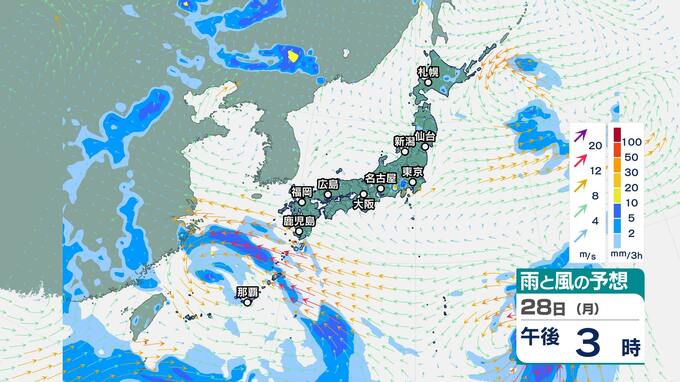 ニュースクリップ 【台風7号】今後の進路と勢力は?23日は沖縄の南を北西へ進む…24日から25日にかけ先島諸島に最も近づく可能性【雨と風のシミュレーション】週末には熱帯低気圧に変わる見込み 2025年7月23日(水) 16:55 国内 天気 28日(月)雨と風のシミュレーション